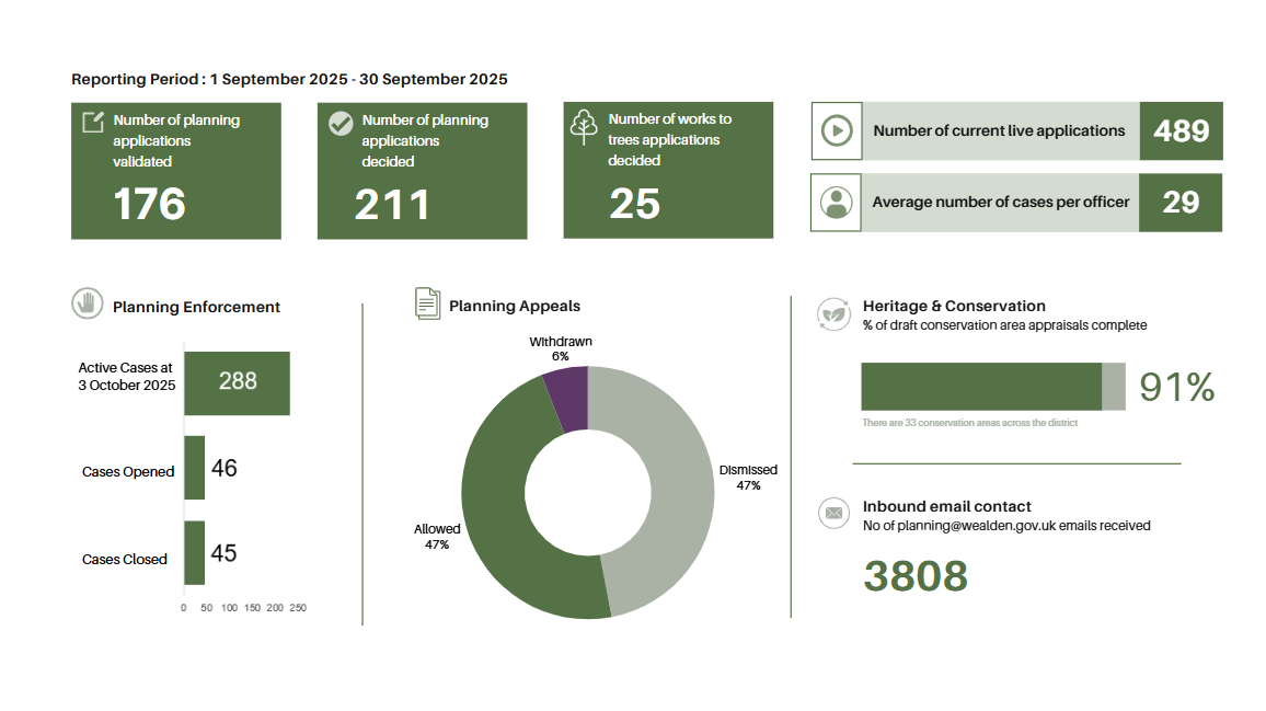 Our key monthly performance snapshot communicates information to inform you of how we are delivering our services across the Development Management Teams. The data is compiled using application data and is intended to provide a broad overview of how we are processing the volumes of work we receive.